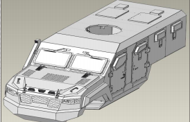 Ballistic protection rating: STANAG 4569 Level IV; Requires full vehicle protection, including engine compartment armor, front armor, top armor, side armor, and rear armor.